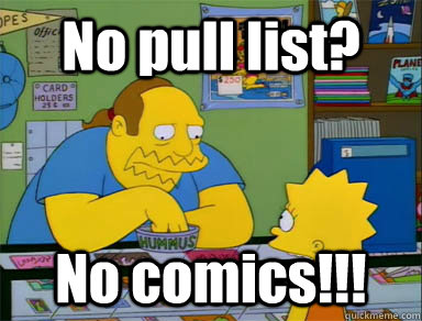 What I mean is, I love going into a comic shop and looking for my comics. I love going in and maybe just finding something you never thought of picking up that looks pretty cool so you buy it in hopes of it being a good read. And I think I’d really miss that if I didn’t have that. Either that or it’ll go to the complete other end of the spectrum and I still go into comic shops and spend way more money than I ever did on other comics because I know I have my set few coming to my house.