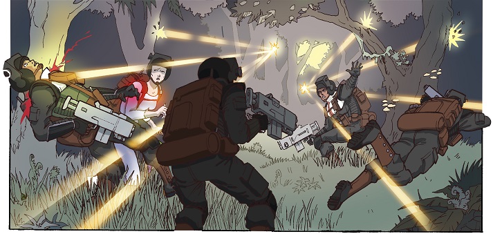 The writing notwithstanding, the one thing that most definitely jumps out at you with Savant is its stunning visual style, brought to life by the smooth, detailed and emotive pencils of Will Pickering and the luscious, almost psychedelic colours of Fin Cramb. They work in perfect partnership here, and are given a dizzying range of content to work with by Alexander, from brutal up-close violence to dried-out dusty forests to luscious greenery. Everything is handled with the same level of detail and care, and as Alexander continues to fire out the gobsmacking creative ideas at machine-gun pace (Lode’s use of colour as a defence mechanism, and the beautifully poetic Bryronious creatures, to name by two), the artistic partnership matches him every step of the way, bringing each and every idea to life right before our eyes.