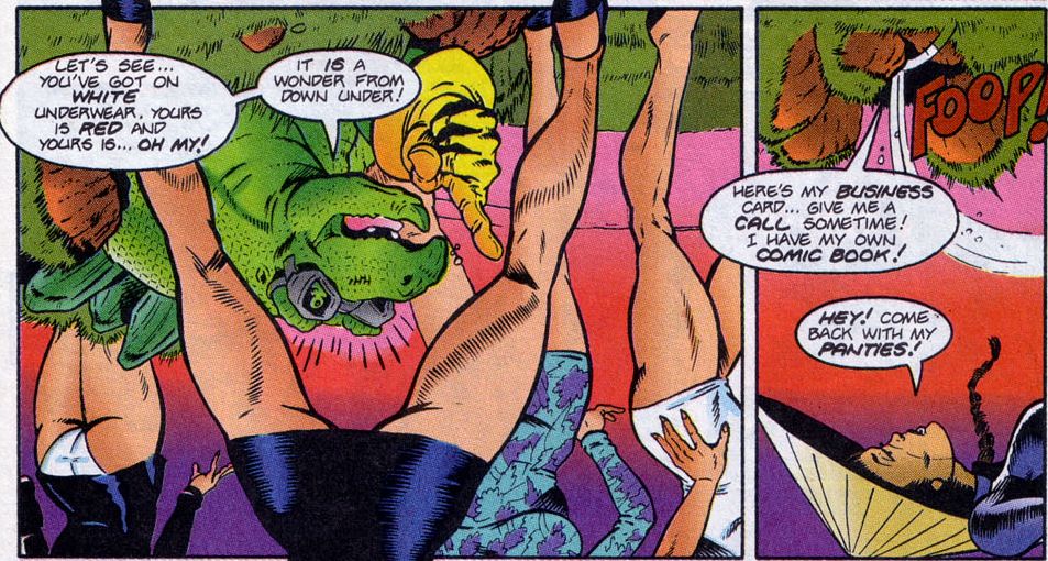 Then Enternity was changed and morphed into Malibu, which saw Dinosaurs for Hire return with volume 2. The writer and creator Tom Mason again brought the same sense of humor into the title but also had the team joined more often by a new Dinosaur of their species a Pterodactyl named Cyrano. I will admit it was the Malibu run that brought to my attention as a kid but as an adult looking back I’m more swayed toward the volume one black and white issues but not by a large margin most Malibu issues had the kind of inappropriate humor, bewbs and bums that the 90’s were oh so known for in comics. On top of this you had the kind of irreverent fourth wall breaking humor that writers strive for today. In my mind Dinosaurs for Hire was certainly a book ahead of its time. But sadly as Malibu tried to plot there comics in line with the way the market at the time was it became all about the crossovers in later issues and I am not convinced Dinosaurs for Hire work as anything other than self-contained unless more care was taken, Malibu also bought into the videogame market which led to the creation of a Dinosaurs for Hire game for the Genesis and featured a lot of the same kind of humor so if that appeals to you then hey fire up the emulator. Indeed the title was certainly one of Malibu’s standout titles until the later move towards crossovers and even at that the publisher was still in a healthy position and then things got complicated with the Dinosaurs for Hire being cancelled as Malibu put more focus on establishing a shared universe with its Ultraverse before months later being gobbled up by Marvel and the series creator and writer Tom Mason departing the company.