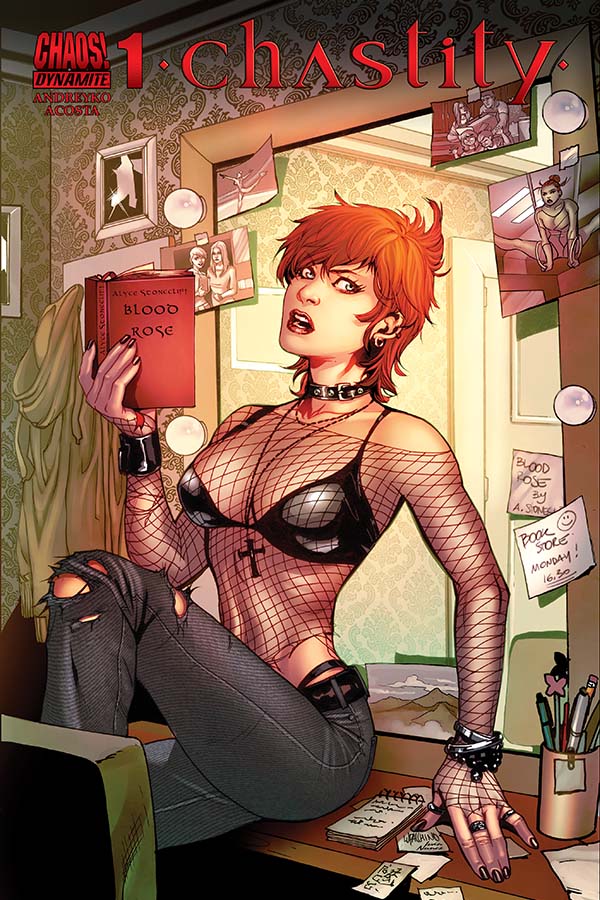 We’re introduced to wannabe gymnast Chastity Marks via baby-to-adolescent photo montage, with a fairly spot-on teenage narration overlain. As she gets older, and thanks to an knee injury, the opportunity to be a gymnast dries up, she becomes obsessed of a particular batch of vampire novels written by an enigmatic author who somehow inspires rabid loyalty in her fans. Quite how it pans out from there is part of the fun, so I’m not going to spoil it, but suffice to say that Andreyko has been rather successful in his mission – infusing this new interpretation of the vampire assassin’s origin story with a lovely twist of irony that’s at once bitingly satirical of the current ‘campire’ trend, as well as something of a love song as well.