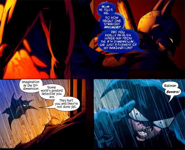 This isn’t a new conceit, but one that’s been discussed many times before, but what we’re discussing here is Bat-mite – an absurd 2-dimensional creation “living” in a 3-dimensional space and representing a 5-dimensional being – and, more specifically, from the words given to him by the writer Grant Morrison. That quote – “Imagination is the 5th dimension” – serves to sum up one of the central concerns of his entire career. What is the fifth dimension, and why is it important?