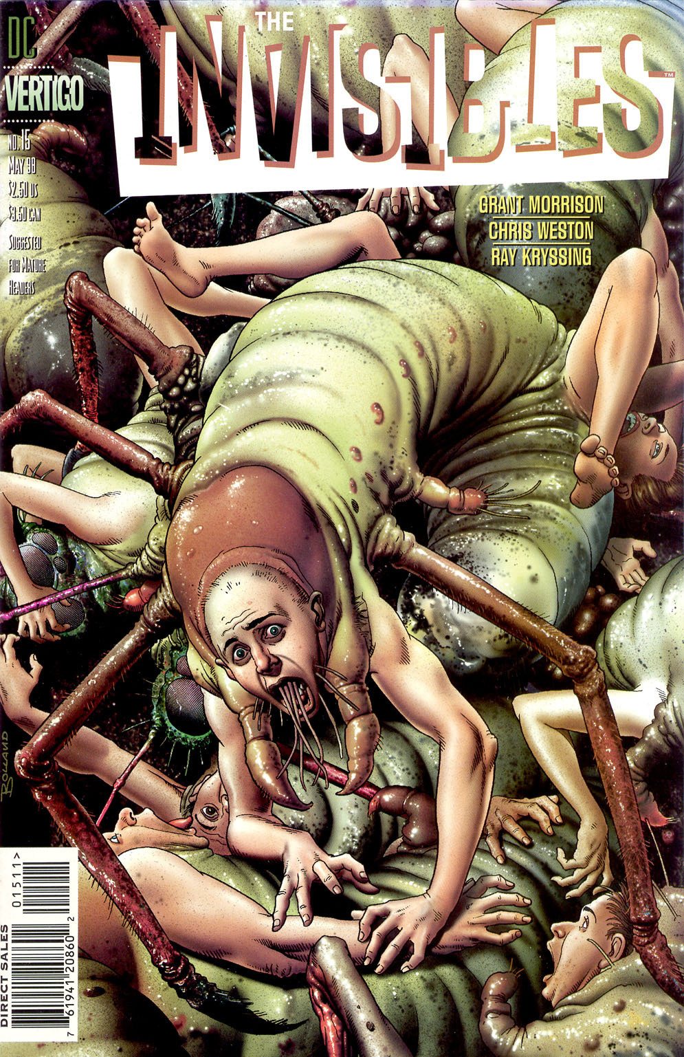 It’s my speculation that the magic in his books has become effectively re-occulted, hidden, become invisible – hiding in the gutters. Neophyte magicians don the garb of their predecessors, whether that’s the hoary robes of the crusty old Western Esoteric Tradition, or the more considered pose of the chaos magicians, or what have you – they revel in the “secret” nature of their work, and becoming part of a world effectively misunderstood by the vast majority of their fellow meat-bags and pink robots. Yet it’s worn like a badge of pride – hardly hidden, or occult. It’s a pose – and one which itself gets in the way of true magic. As Morrison himself boldly realised in comic form, in order to do true magic, one must become invisible. But in order to get there, one must also often go through a period of being overt – saying, this is me now, this is mine, and it’s separate from all the other constructs you’ve tried to provide me with before. This is burning down the school, beating up the teacher, running away from home, doing drugs, getting in with a ‘bad crowd’ of occult superspies who dick around in bondage gear and wear costumes like it’s Halloween all year round. Yet even Frosty Jack had to transcend the limitations of the context provided for him by his fellow Invisibles. He had to outgrow them, learning from King Mob’s own revelations about the nature of the real enemy, Ragged Robin’s comprehension of herself as already being a 5-dimensional being who’d inserted herself into the Invisibles story some years hence in their future, then travelled to the past to actualise that.