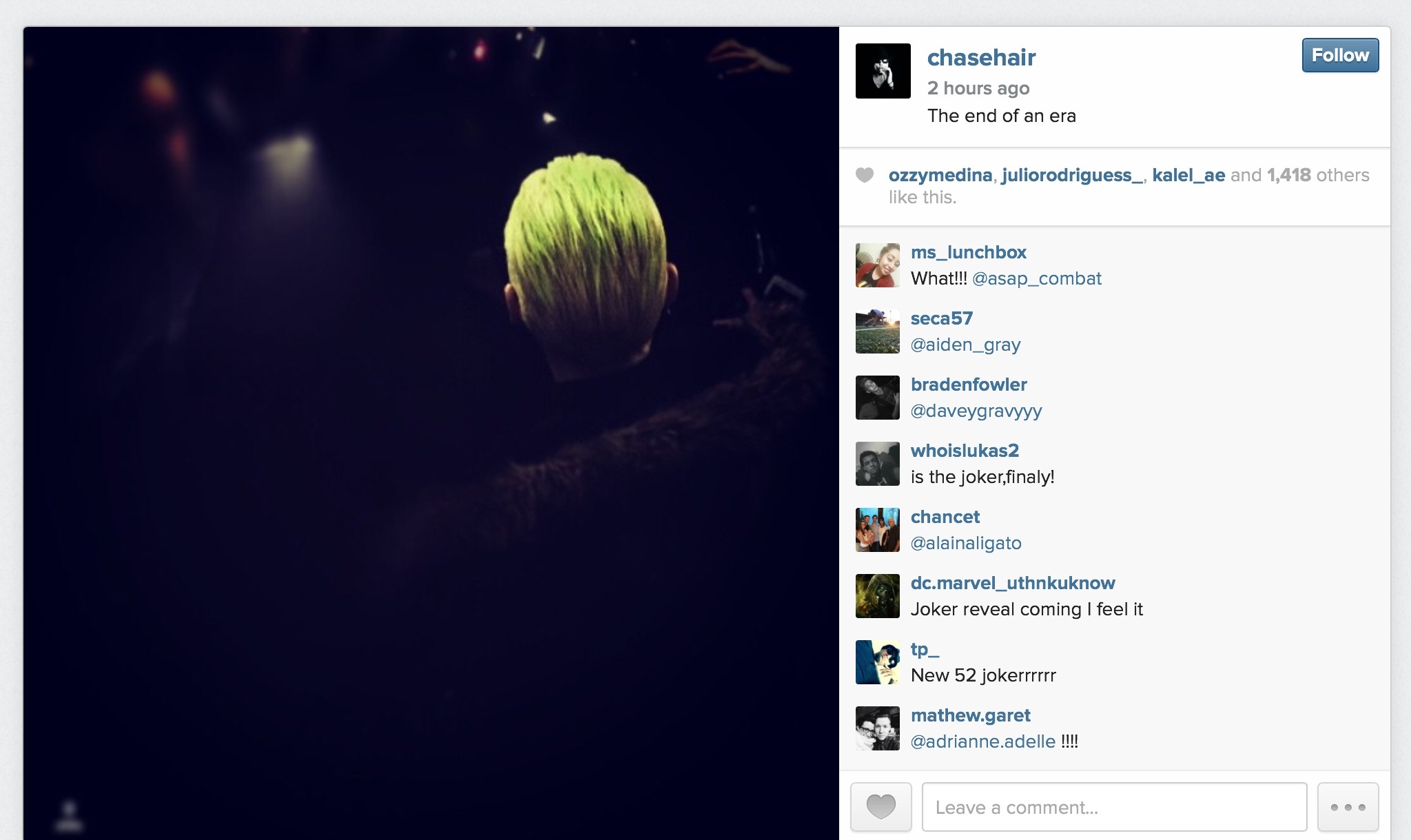 And, just an hour ago, Ayer Tweeted again, presumably with a pic of Leto, pre-chop…