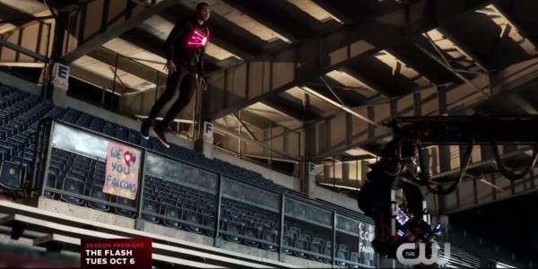 As it turns out, Drameh’s Jay Jackson will be the other half of Martin Stein’s (Victor Garber) Firestorm. The latest behind the scene footage shows Drameh wearing the quantum splicer created by Dr. Harrison Wells (Tom Cavanagh) and Cisco Ramon (Carlos Valdes).