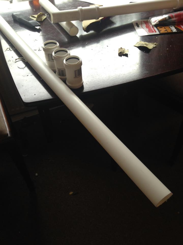 This was by far the most fun part of the costume to make, I love making weapons and it’s a lot easier than you might think. A lot of cosplay weapons are made from a paper tracing and covered in expanding foam before carving out the shape of the blade and sanding it down. For Nightwing it was much simpler than that. All it took was a quick trip to B&Q and into their plumbing section to pick up some PVC Pipe. From there you’re already halfway done, just spray paint it black and you’re good to go right?