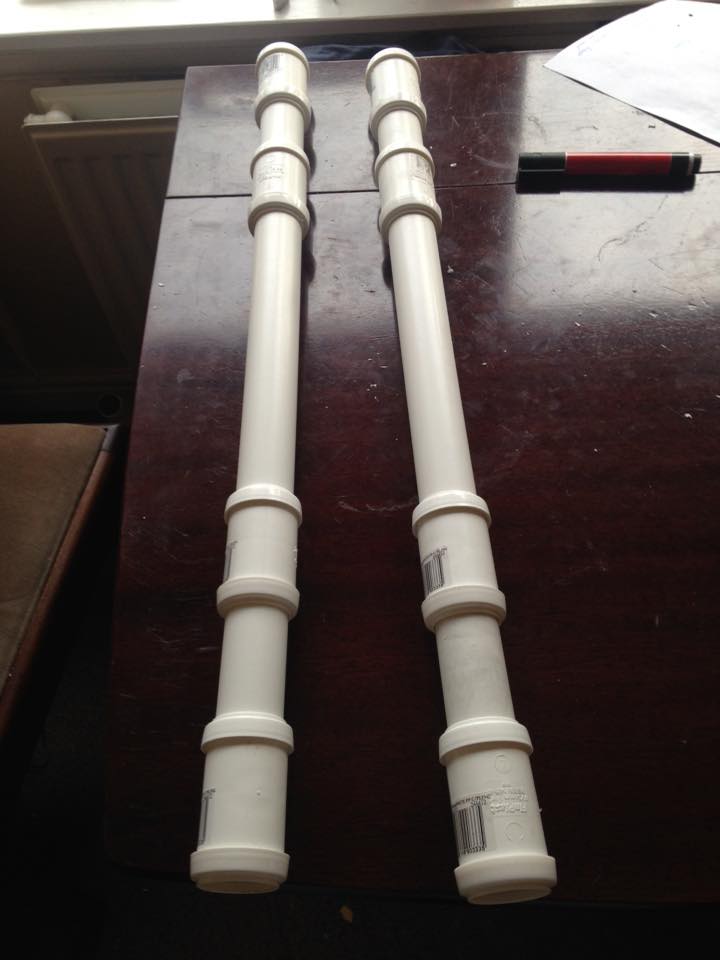 Well not quite. Anyone who knows Nightwing know that there are two end pieces on each side of the baton to generate electricity. For the end pieces, I picked up the pipe connectors that go at the end of my pipe, they also have a really cool look to them which really stands out after paint. I bought a total of 8 connectors (Two for each end) and 32mm PVC Pipe and made my way back to the Batcave.
