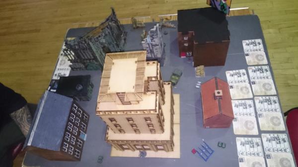 We set up a city board with a mix of my terrain, his TT stuff and other odds and ends.