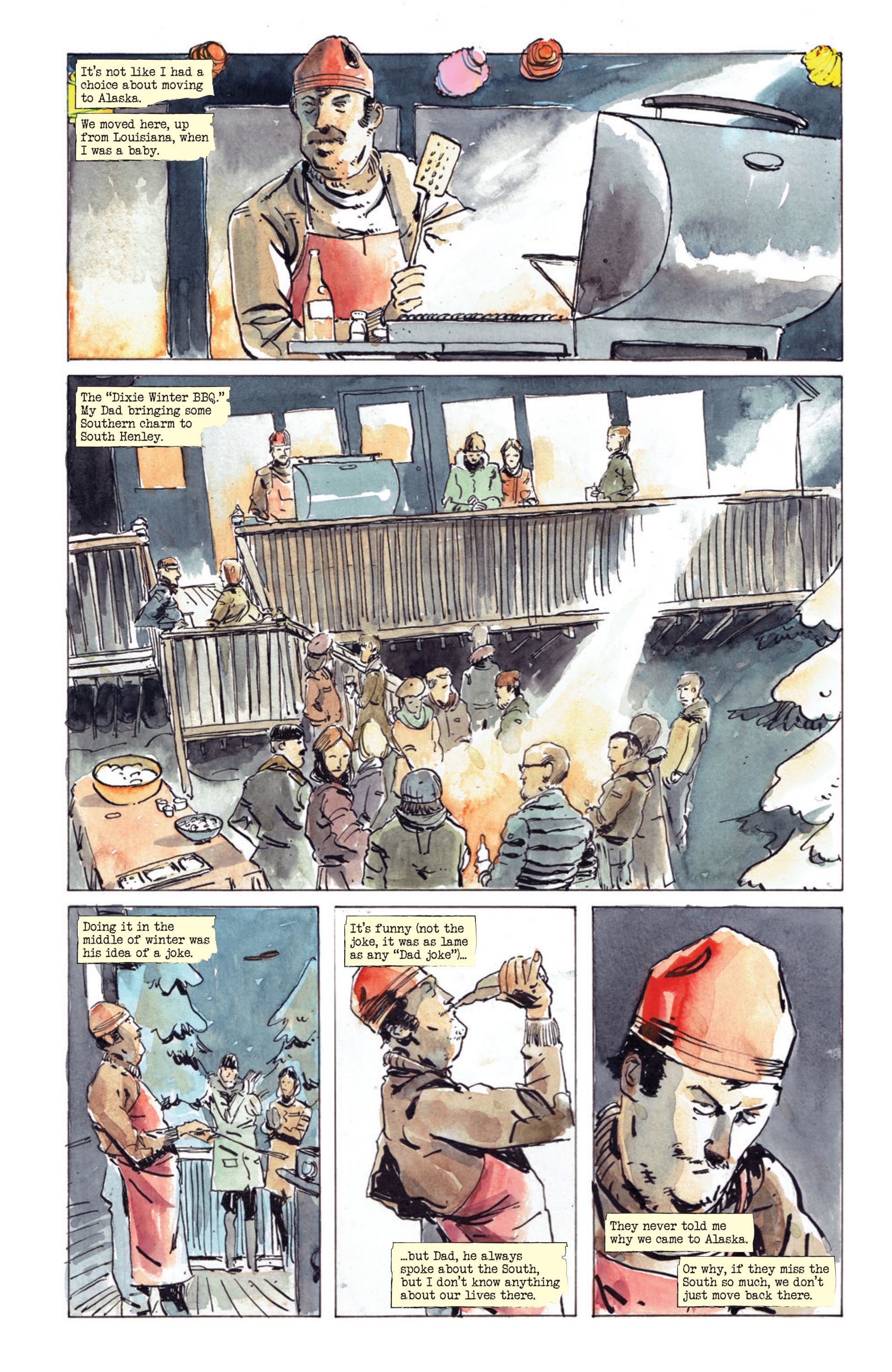 BCP: Tyler, you’ve opted to use watercolours for the artwork here, giving the book a really unique aesthetic. What prompted that decision?