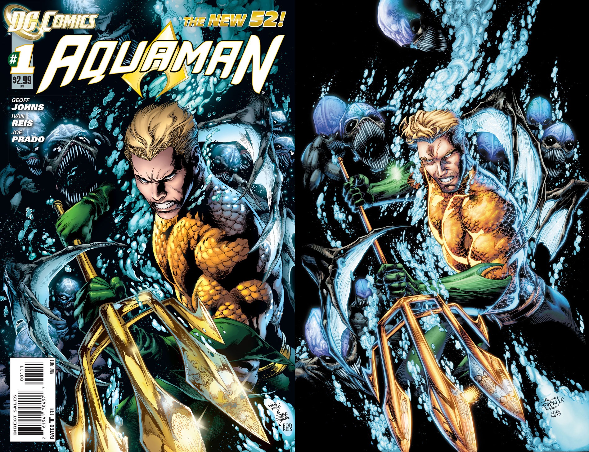 Aquaman #52 variant cover by Brett Booth and Norm Rapmund (original #1 cover by Ivan Reis, Joe Prado and Rod Reis)