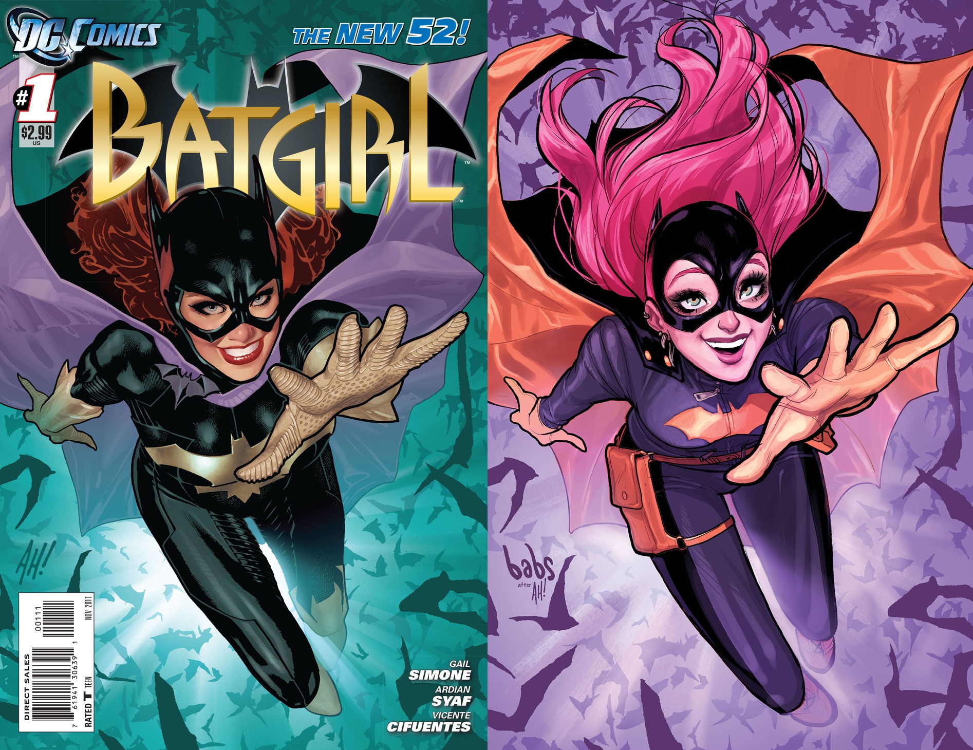 Batgirl #52 variant cover by Babs Tarr (original #1 cover by by Adam Hughes)