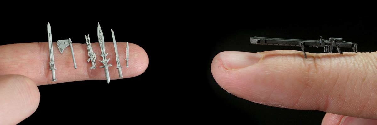 The weapons options are astonishing. Brass is sharp and durable, and not terribly prone to being bent unwillingly at the thickness provided (which I’ll freely admit was one of my concerns). Plus, for the larger scale figures, steel versions exist also.