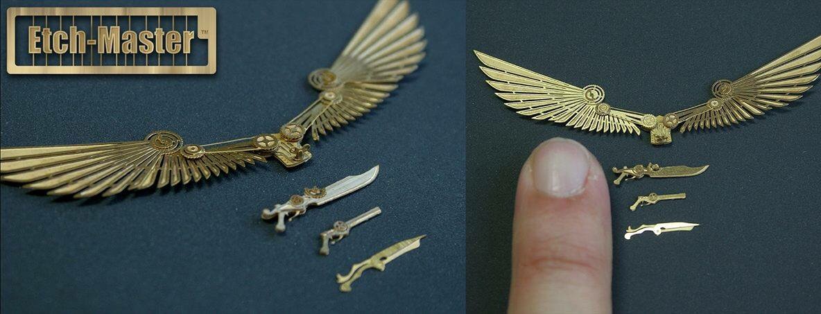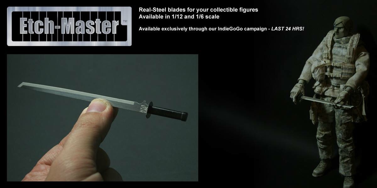 With their current Sci-Fi and post apocalyptic Kickstarter now running and making 300% of its target in under 2 hours (with more than a fortnight to go!) – and with objects and items for everything from tiny toy soldiers to customizing your action figures right up to Hot-Toy 1/6th scale – Etch-master bring a wide range of exquisite, fiddly little jeejaws to your man-doll of choice. With large sheets retailing just shy of £8, and the smaller ones (via KS) at a fiver or less, it’s an absolute steal.