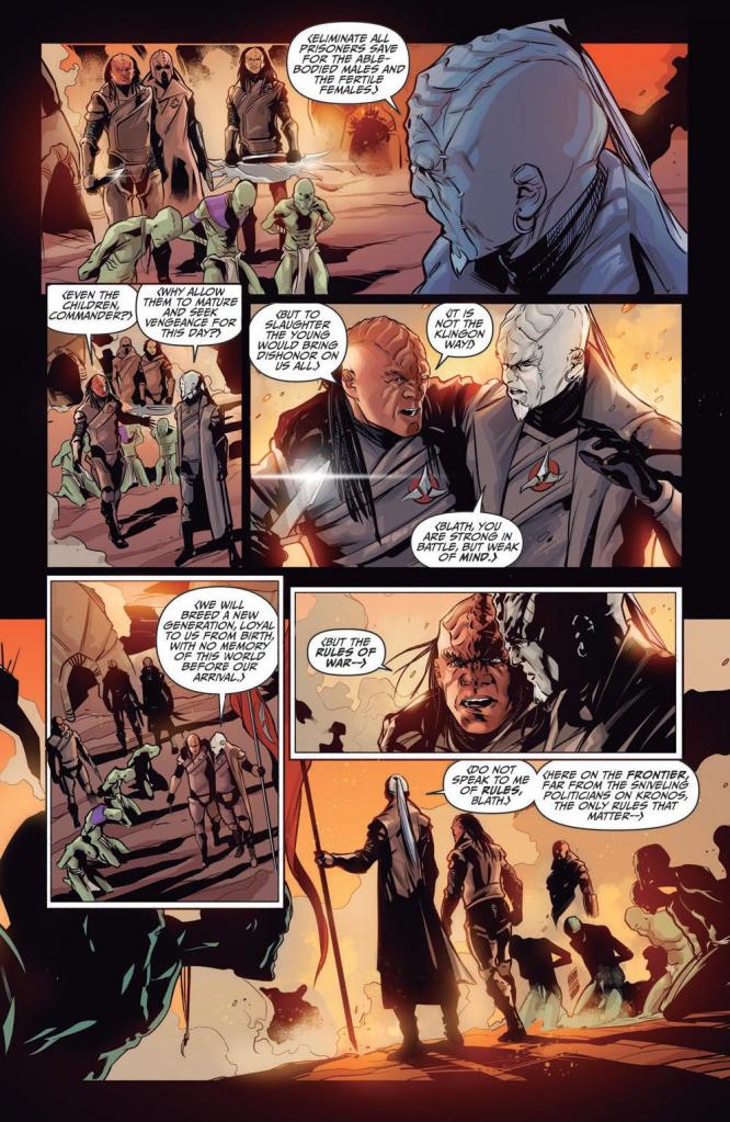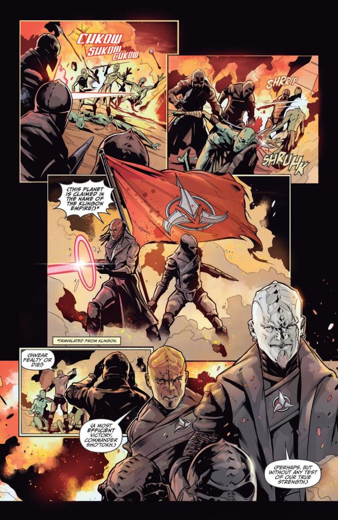 So… the art is nice. Angel Hernandez captures nice and expressive likenesses, and really sells the brutality of the Klingons in action. Especially impressive is the fact that the Klingons are distinguishable from each other (something which comes in extremely helpful when you can’t understand a word anyone, even the humans, are saying).