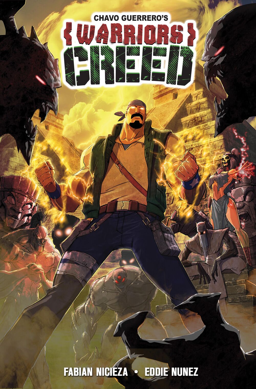 My familiarity with pro wrestling is not exactly what you would call extensive, and up until being handed this book, I was pretty much ignorant of the fact that there’s a professional American luchadore scene nestled in the bosom of Great Mother Wrestling. For those of you not in the know – and I’m only Wikipedia-knowledgable on the matter – Chavo Guerrero is part of said scene, and a member of what seems to be a long-running wrestling dynasty that’s been etching itself into the history books since 1937. Which, if nothing else, is pretty bloody impressive when you think about it, and so why not attempt to make their legend a super-heroic one?