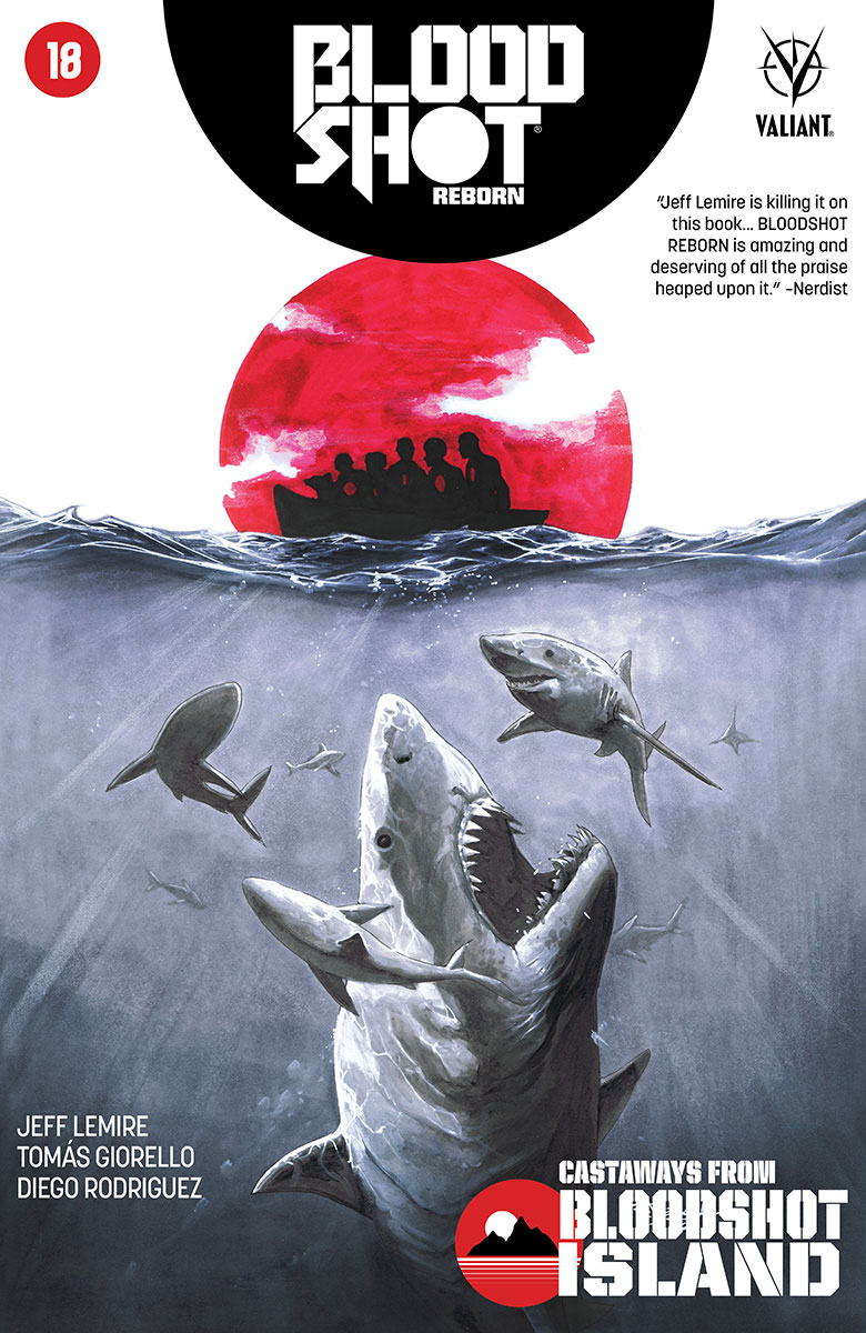 With Bloodshot Island now at a close and Bloodshot USA on the horizon Issue 18 of Bloodshot Reborn is a bit of a filler issue and a perfect opportunity for the reader to familiarise themselves in some detail with the Bloodshot Squad. Castaway at sea with no knowledge of the rescue that’s coming (yeah, thanks for that Valiant previews) Jeff is taking this opportunity to let the reader breathe. After two pretty action packed arcs we take a small pause before he throws us headfirst into (what I suspect) is his Bloodshot Reborn swansong with the USA storyline…