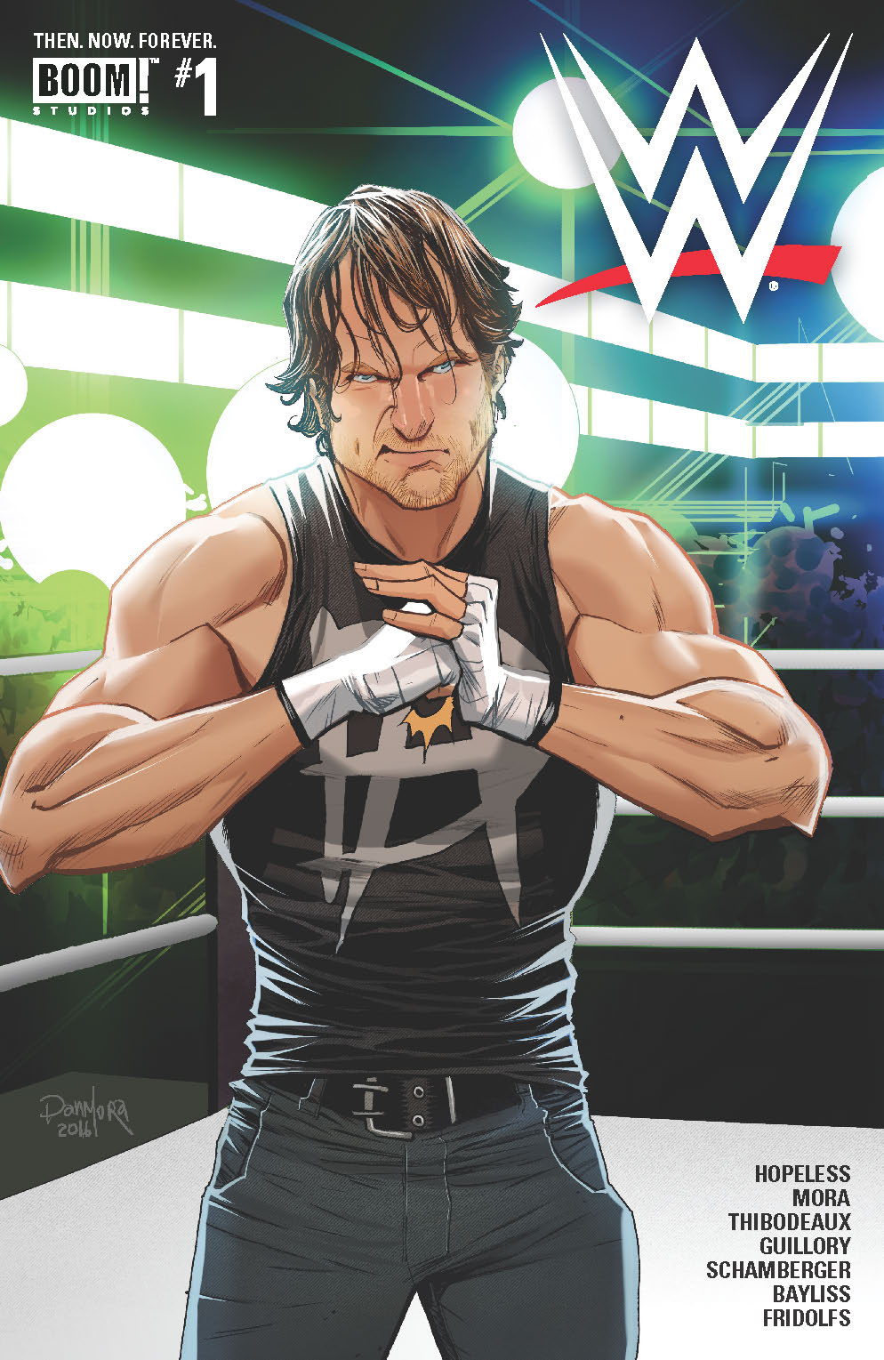 Thankfully however, that preconception may finally be under threat with “Then. Now. Forever”, a brand new WWE anthology title from BOOM! Studios. This first issue is made up of a main story and a series of shorter supplementary stories, and the bulk of the page count here is dedicated to a Shield-focused tale from Dennis Hopeless and Dan Mora’s which is set to branch out into an ongoing series early next year.