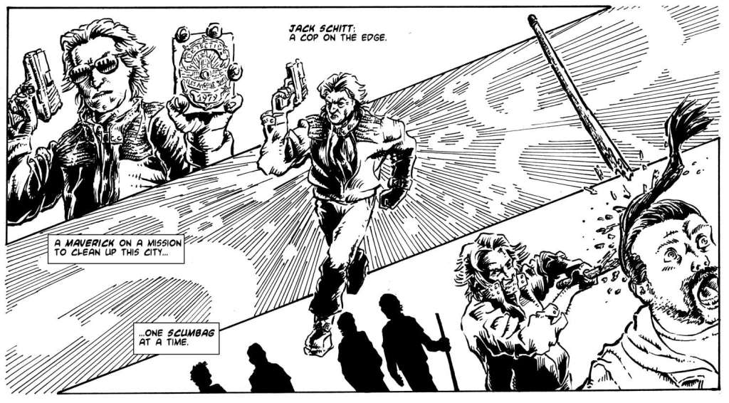 The black and white artwork is effective, with Johnston packing expression and dynamism into his pages, and while the level of detail definitely ebbs and flows slightly throughout the course of the 20 pages, the overall aesthetic is an impressive one, and the action scenes – the car chases in particular – are handled with a real flair.