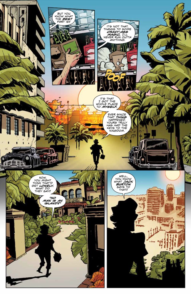 JORGE CORONA: I’ve been a longtime fan of the Big Trouble movie. That reason alone made me jump at the opportunity of to work on this book. After reading the script and the ideas Anthony had for the series, I was thrilled. World-building is one of my favorite things to do, and the new reality Jack lives in allowed me to do just that while still playing with characters I love.