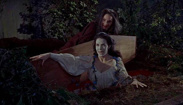 Speaking of his minions, a real highlight is the foul hag Greta, (Freda Jackson) who’s scene cackling with glee as a newborn vampire girl claws her way up from the grave is one of the darkest and most brilliantly unsettling Hammer would ever come up with.