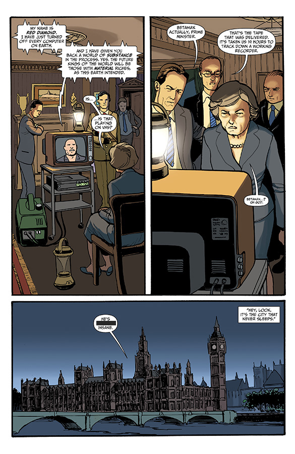When I picked up Kingsman: The Red Diamond I was not disappointed. It greets you with the same wit and ironic self-awareness that Mathew Vaughn’s cinematic interpretation has. Rob Williams takes over the writing in this sequel and does a good job of picking up where Mark Millar left off.