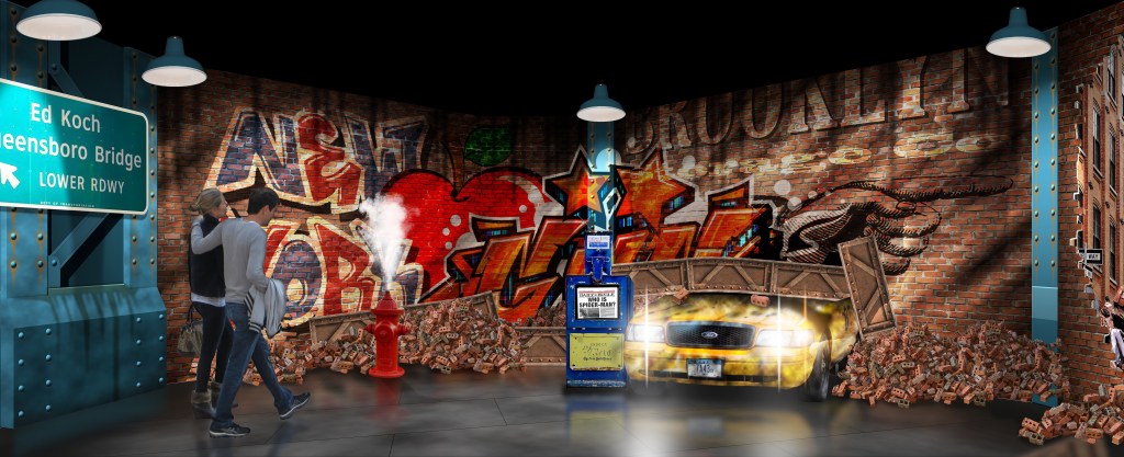 Underneath railway arches, guests will see a series of skyscrapers, where the Daily Bugle has arrived to take a photograph of Spider-Man who is suspended high above the city streets.
