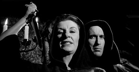 Coming off the back of portraying Dracula, Frankenstein’s Monster and The Mummy, Lee is his usual imperious self and while his role isn’t huge, he unsurprisingly commands every scene he’s in, but it’s the often double act of Jessel and Dyall that really shine here. As the ageless witch and warlock couple, they both radiate sheer, gleeful malevolence at every turn.