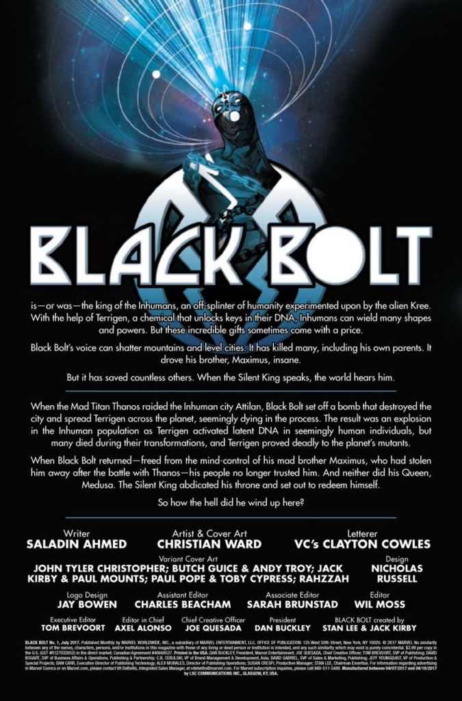However, with all that said, Black Bolt may very well be one of the best Marvel comics I’ve read in a long, long time.