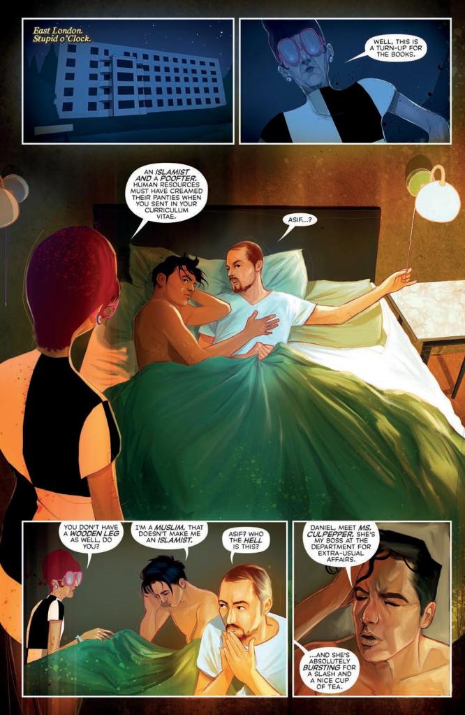 Like I said, this is a short issue, and as such there’s not a lot of room for progression. However, where it lacks in progression of the plot it makes up for it by fleshing out the already established characters. We learn more about Asif, getting to see some of the hilarious butting of heads between him and Dorothy, reminiscent of the clash between Sam Tyler and Gene Hunt in Life on Mars. I have the distinct feeling that Culpepper’s clinging on to the past is going to be a theme that going to be significantly expanded in the very near future – if I’m reading the subtle hints correctly that is.