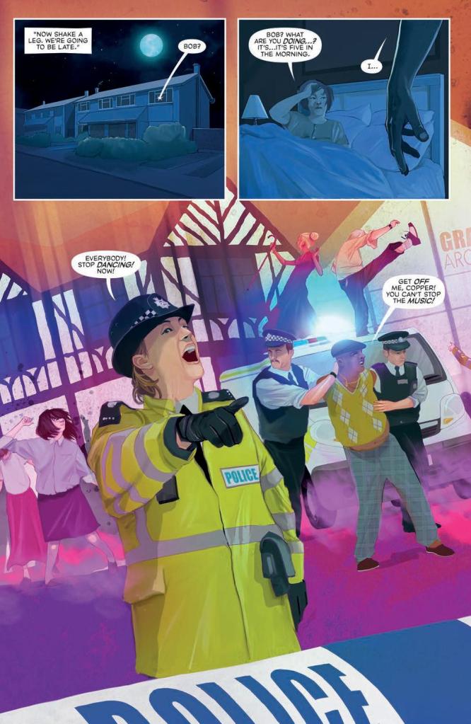 A short but sweet issue this time round with yet more delicious teases dropped for the wider tale to come. Fergie has finally come out of his shell, but not in the way that most youths do by getting drunk in a park for the first time. His powers were unleashed last issue with the help of ghost Sid, and now we’re starting to see that the effects are a lot more far-reaching than just totalling his bedroom.