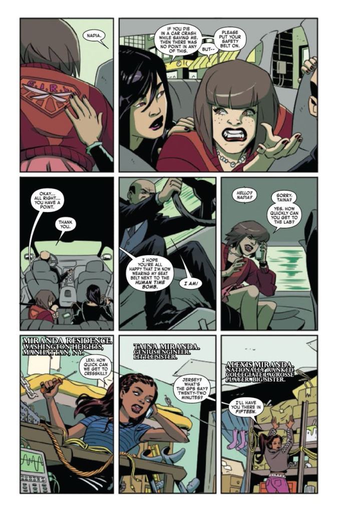 The first couple of chapters in this four-issue collection are fantastic, with a fast-paced sense of urgency as Nadia puts out the call to her fellow girl geniuses to help disarm the “insurance policy” bomb that is ticking away inside Ying’s head. The story manages to blend humour and high stakes in the same way as Fraction and Aja’s Hawkeye or Waid and Samnee’s Daredevil, and the efficiency with which writer Jeremy Whitley introduces his diverse supporting cast is definitely worthy of a high five or two.