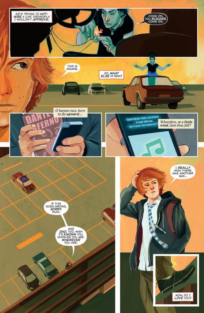 It’s a blender mix of genres with so many things going on that you might feel dizzy trying to keep up with it. On the one hand you have the imaginary friend and coming of age story of Sid and Fergie, where you’re trying to figure out this supernatural quest that they’re on and work out just who Sid is. On the other you have a reflection of current teenage subcultures butting heads with the original mod and punk cultures that defined them. Oh, and there’s an interesting sub-theme which asks whether soul of these movements really died or just evolved into something new?