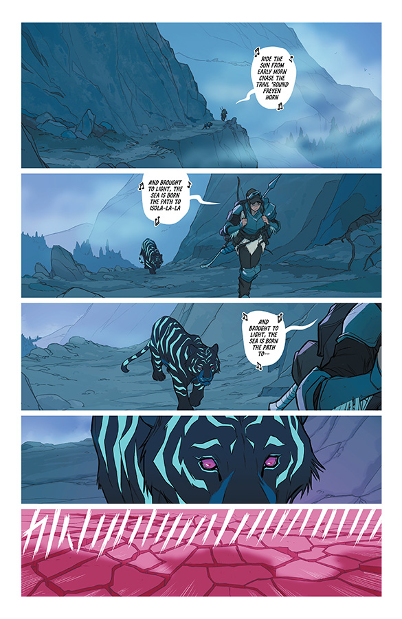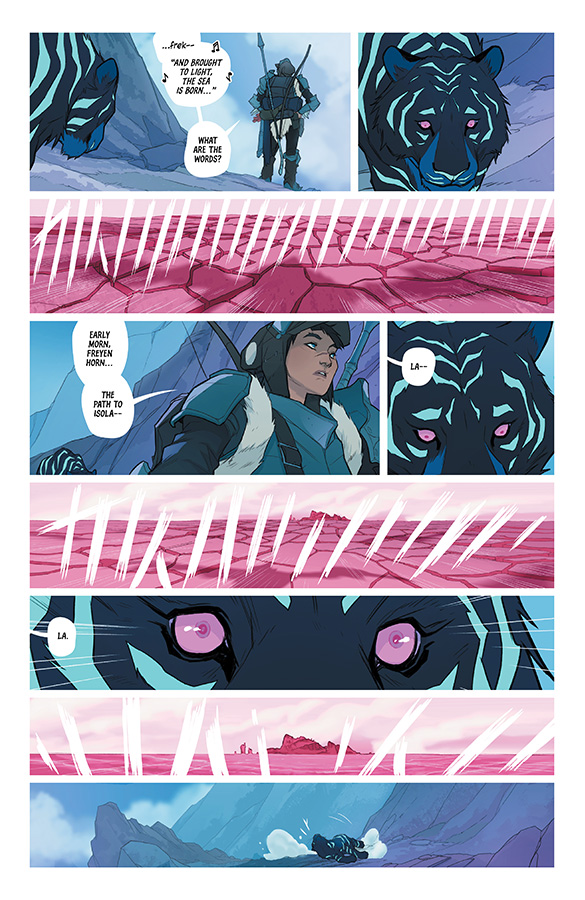 Isola’s first issue established itself as a strong beginning to a fantasy epic. Wearing its inspiration from greats like Miyazaki on its sleeve, it wove a tale of a Queen-turned-Tiger, her guard, a warring nation, and the spiritual forces that surrounded them at every turn.