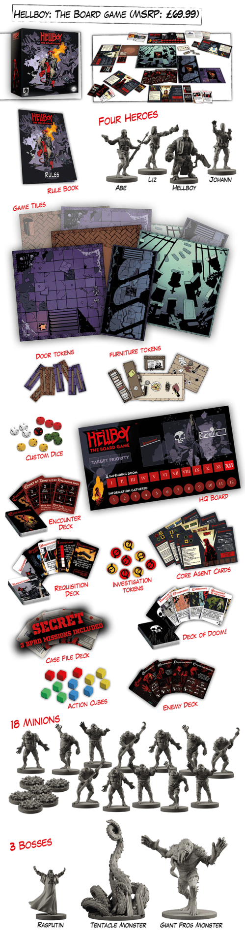 But if you want to make your own missions, never fear – the B.P.R.D. Archive Expansion is here! 30 new monsters AND a horny Hellboy, making the whole game completely customisable.
