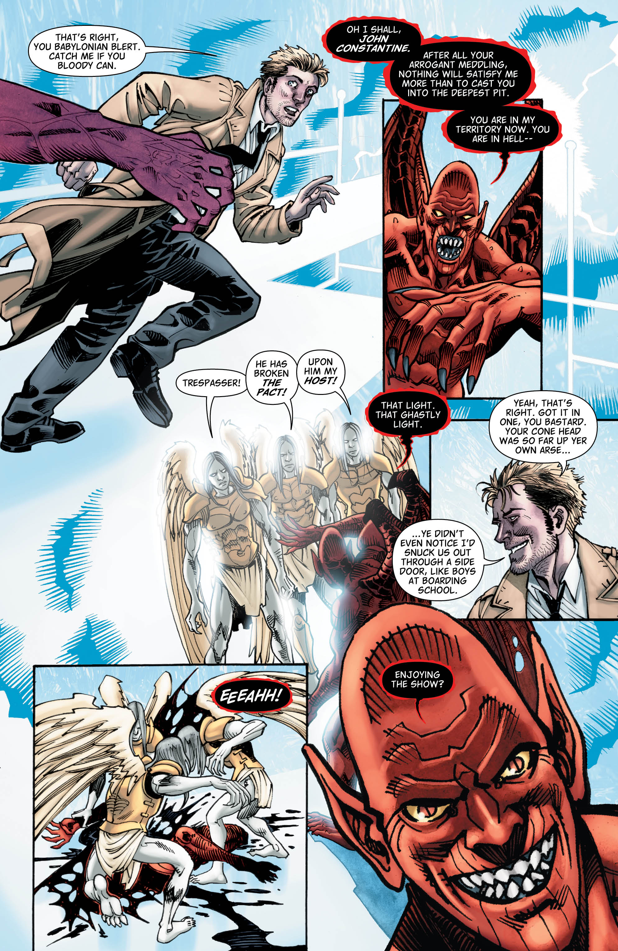 This issue continues the trend of going back to the good ol’ days both for readers and characters alike. In the first few pages we’re gifted with Nergal explaining his plans to not only kill John and exact his revenge, but to take everything he’s ever loved away from him in the process.