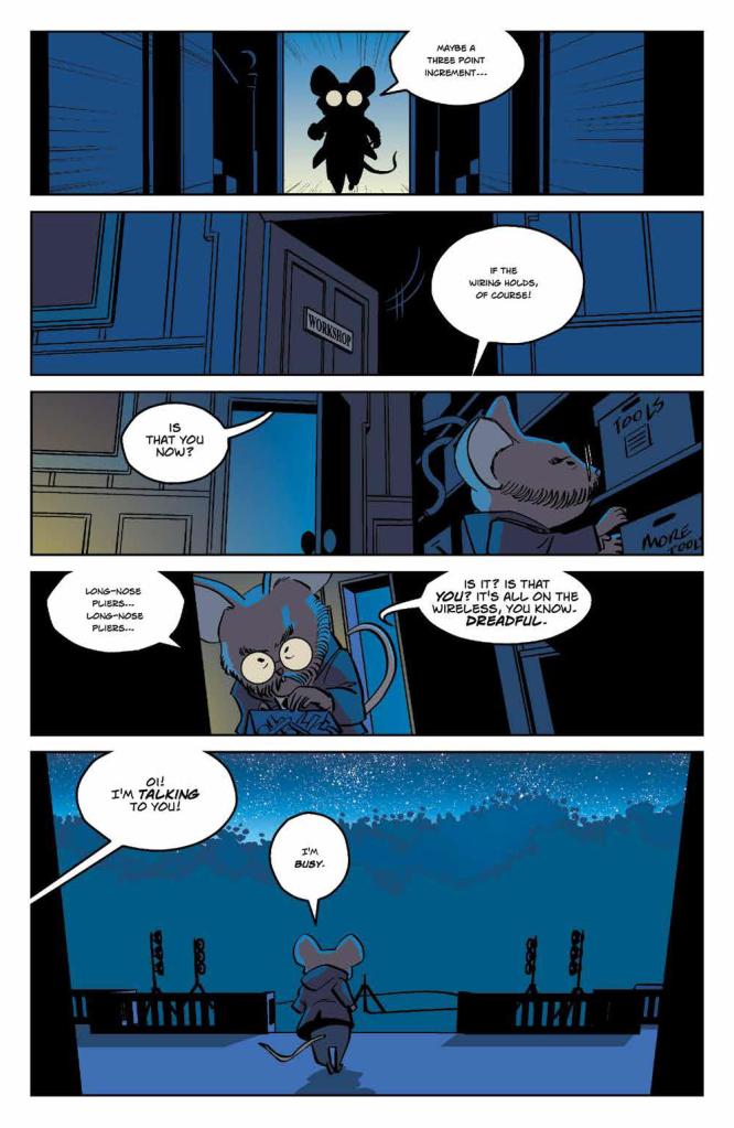 Journey’s End picks up not long after the previous arc, with our surviving cast of characters having barely escaped the doomed village of Lower Crowchurch. All the familiar faces are here, with Mr Minks and Susan Peardew trying to make their way South to escape the evasion, while Clive Slipwaway, Alph and Major Upton do their best to survive in the fields of rural England. The story also features the return of several supporting characters, along with a new face in Jonny Jakes, a fox who bears a striking resemblance to a dearly departed friend.