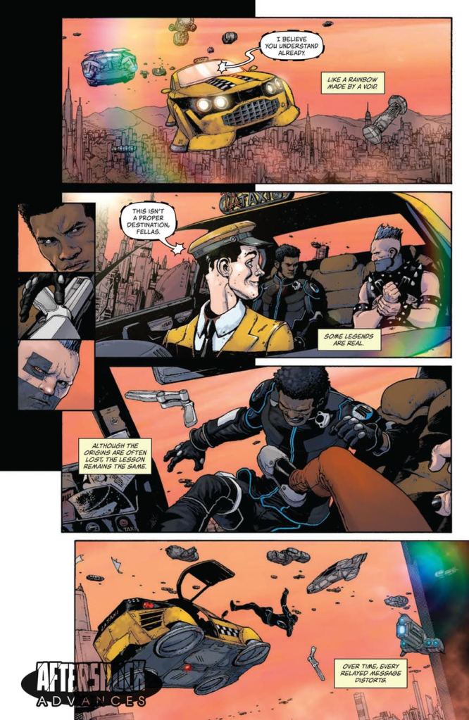 The story is wonderfully complimented by the precision and detail of Andy Clarke and Dan Brown. The cityscapes and action are wonderful to behold but some stylistic choices were lost on me. It’s an issue of personal taste but having a switch from portrait to landscape, albeit to convey the literally awesome sight of the Relay, irks slightly, as does some of the touches which appear to be homages but are maybe too blunt? Interestingly, the cover is fantastic but upon reading one can’t help but think there was an opportunity missed. Of course, I could be ‘overthinking’ all of this but given the questions posited by this issue, it’s not entirely my fault…