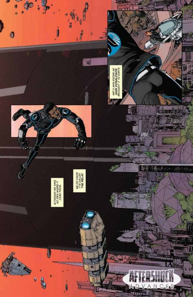 The Relay itself is a cyclopean broadcasting monolith that unifies the universe; all submit before it or are extinguished. Each newly colonised world is brought into the fold with the booming edict to find Donaldson’s world – Donaldson here being the almost mythical founder of the Relay. Carter is a true believer or follower and it’s an interesting choice to see the doubt and apathy from the supporting characters opposing the fervent ideology of the protagonist and not vice versa. For good or for ill Relay takes important questions of today and forces you to confront them in the style of the science fiction classics of Asimov, Dick, or Bradbury. Religion, integration, and the notion of self and expression are all bundled up here in a pretty well paced first issue. With so much going on though, there is the potential for one failing to see the wood for the trees.
