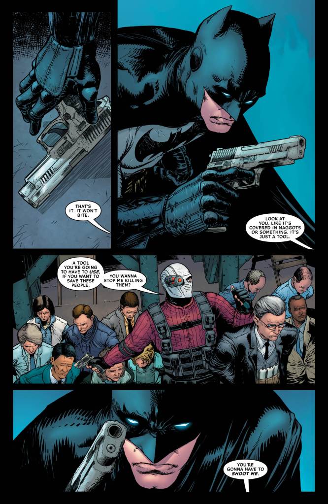This issue brings the arc to a close in a very satisfying way, with the Bat and the homicidal gunman butting heads after a great buildup that intrigued me in the same way classic Batman tales – and the Telltale Games series – did,. Christos Gage manages to include some really touching moments, developing the character of Bruce Wayne and this particular version of Batman in a variety of different ways. Ultimately then, Sins of the Father serves as an intriguing, grounded addition to the established canon, and is well worth a read, particularly if you’re a fan of the Telltale Games series.