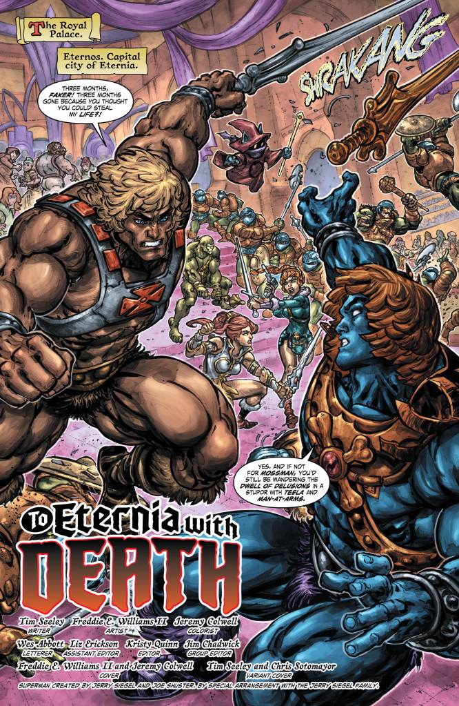 DC has been doing a fairly impressive job with its franchise crossovers in recent years, with powerhouse properties like Batman, TMNT, He-Man and Thundercats all crossing paths with mainly enjoyable results. Well, this week sees the launch of their latest endeavour, as writer Tim Seeley and artist Freddie E. Williams II bring the worlds of DC’s Injustice and Mattel’s Masters of the Universe together for what promises to be an epic showdown.
