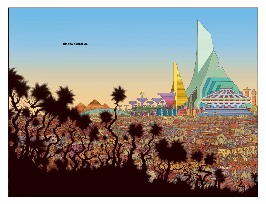 My introduction to Tradd’s artwork was through his covers for Marvel’s Secret Avengers which were pretty darn cool, as was his worthy portrayal of the Ghost Rider. His work here in The New World is typically trippy made even more so with the psychedelic colour palette.
