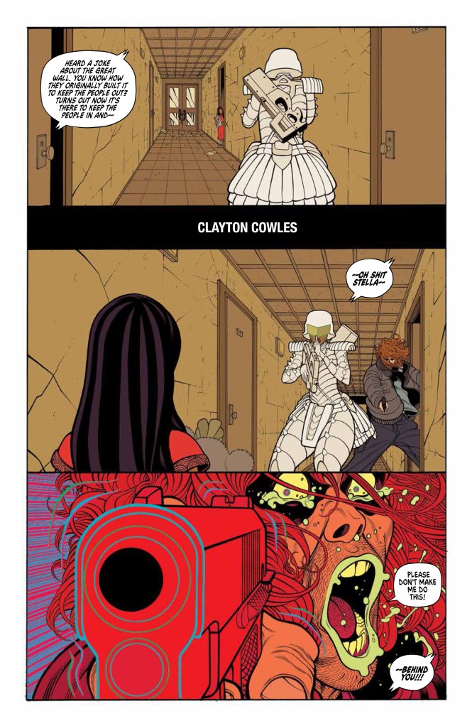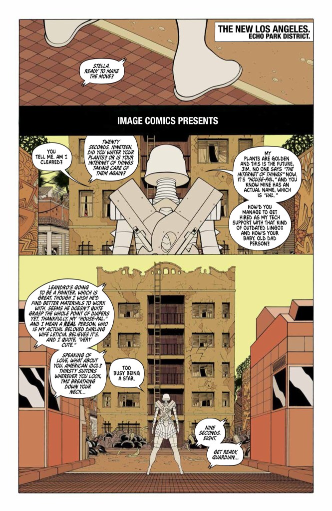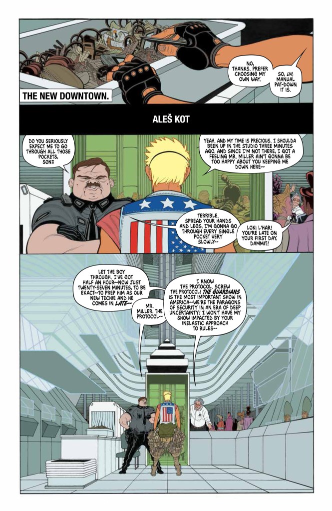 This first issue introduces us to The New World with an impressive and weighty 64-page opening salvo. Kot makes great use of the extra space in this extra-large issue by giving a sufficiently succinct exposition on the background of why we are where we are. It’s a wise approach, and means that these details don’t prey on our minds while his clever dialogue leads us through the exploration of what’s happening now and what’s still to come.