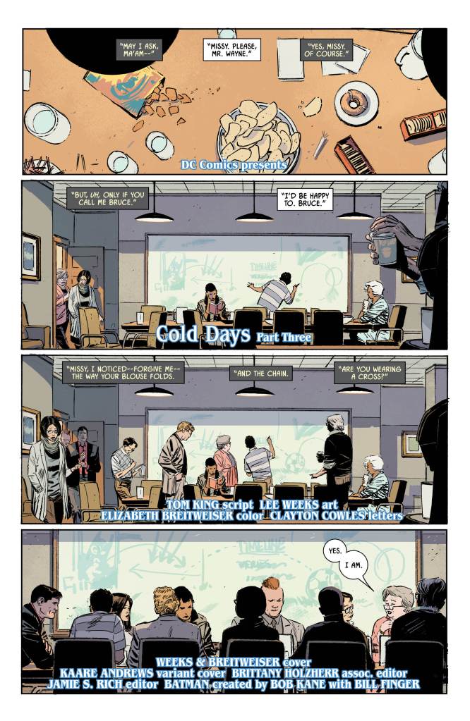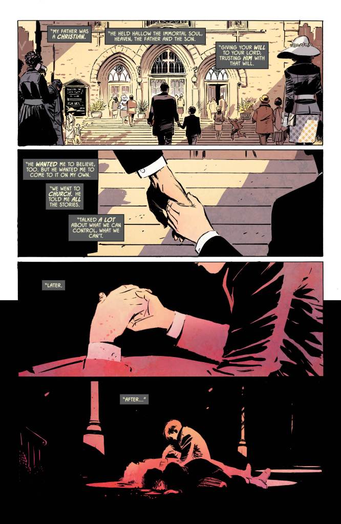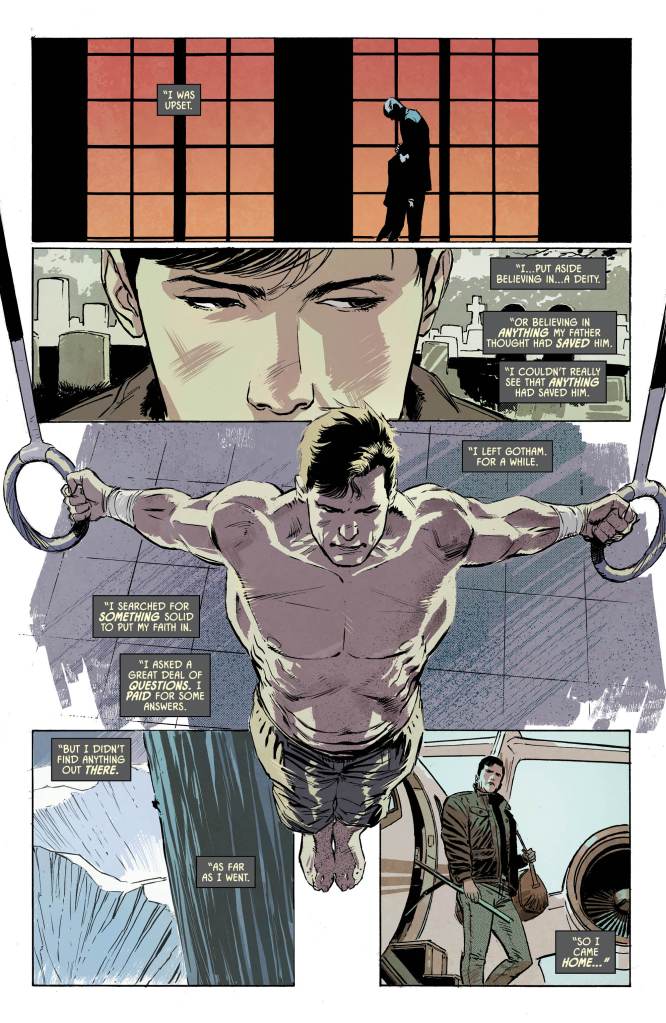 We all have our little moments of clarity where we finally step outside ourselves and realise we’re on the wrong path. This particular issue provides a fantastic retrospective of Bruce’s own life in this, the latest in a long line of dark times. By questioning his own actions and looking back at the moments that brought him to this mistake we see a man lost, searching for who he was back when he felt like he had the strength to get through anything.
