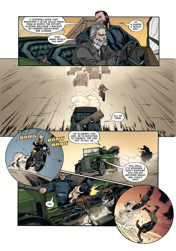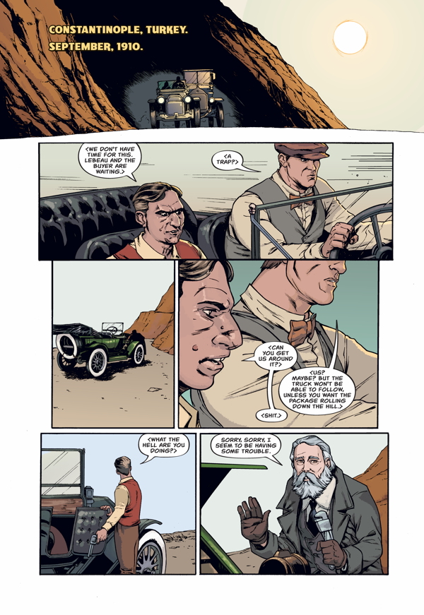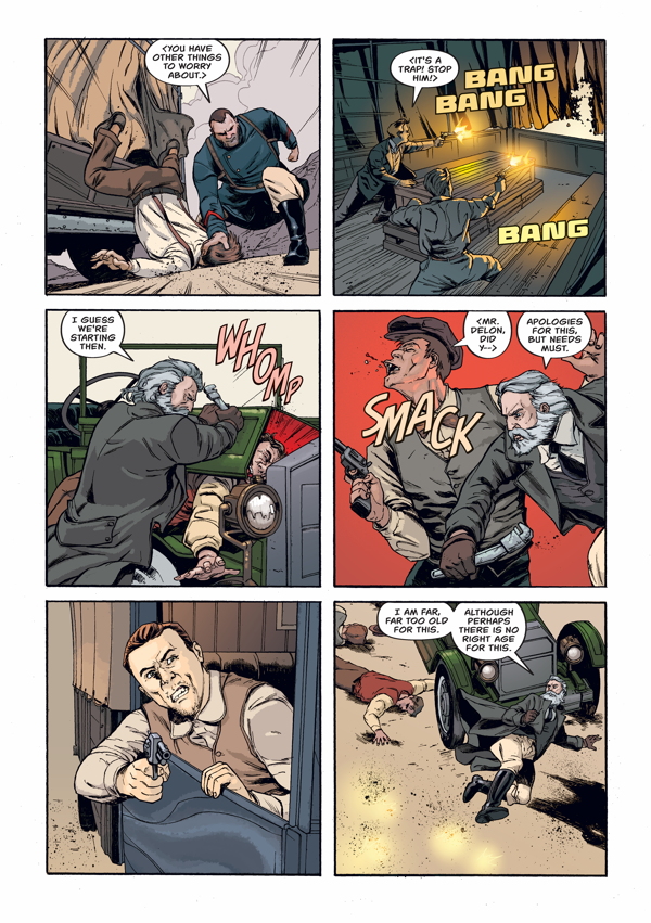 The action the shoots back to 1910 in a French foreign Legionnaire outpost in Morocco. A mountainous man named Mr Delacroix has found himself there, escaping a disastrous past with the Paris mob, a past brought back by the elderly figure of Alistair goading him into helping recover ancient artefact. A simple smash and grab heist it seems, until we learn that the artefact contains much more value than just money. The mob has connections with another organisation with its sights set on using it for something far more nefarious .