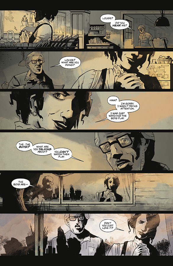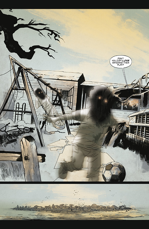 Torres’ artwork in this issue is a little hit and miss in my opinion and while I thought the overall style and colouring was perfect for the story that Cullen Bunn has written it felt like the presentation of the characters was a little inconsistent. Where I thought Torres’ art was really great in the issue was in the depiction of the revenants. I’m pretty certain it’s intentional but they are very much how a child would draw the creature hiding in the wardrobe or the “friend” they talk to sometimes when they’re alone… seriously, the stuff of nightmares.