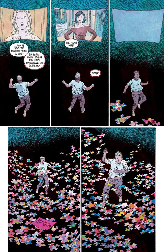 When I picked up the first issue I completely misunderstood what I now realise is a really clever device in the art. There are panels that visibly blur and stretch and deform and I honestly thought I had a dodgy print until I recognised the pattern as showing the switch over of personalities. If you’re old like me and had a TV you tuned with a dial as a kid, then you may remember when changing TV channels you could get a stretching of the image as you dialled in the next channel and this is exactly what you see on these panels, as one signal/ consciousness gets stronger it displaces/ warps the image you’re seeing.