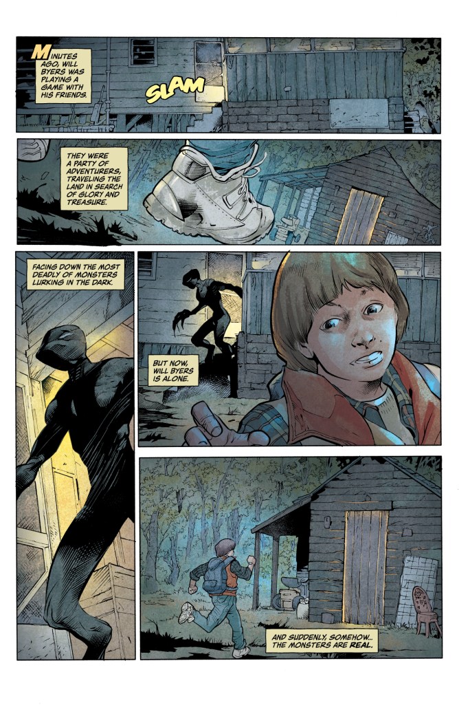 Stefano Martino, Keith Champagne & Lauren Affe provide the artwork for this series and are already doing a great job, with a style that captures the feel of the TV show whilst giving the new aspects of the story a life of their own. I particularly thought that the brief appearance of Eleven was beautifully drawn. The depiction of The Upside Down is pretty good, but for me just doesn’t appear to be anywhere near dark and dirty enough, a fact which took some of the tension away. That said, perhaps they’ll show this world becoming more decayed as the story progresses.