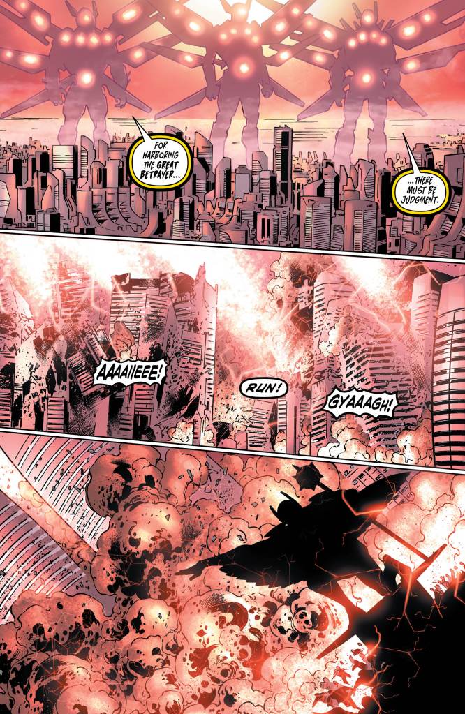 Speaking of Hitch, I’ll do what I always do. I’ll praise both Bryan Hitch and colourist Jeremiah Skipper for their good work this issue. Hitch especially shines with his excellent fight choreography between Carter and Katar as they spend the first half of this issue dogfighting. However, I feel like Skipper is about to get a lot more praise from me as the final few pages of this issue show off what he can really do when given a certain scale (pardon the pun for those who have read the issue) to show off his skills.