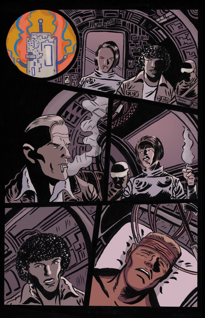 David B Cooper’s typically strong colours also go a long way towards deciphering some of the narrative ambiguity, using subtle palette shifts to differentiate between Alex’s hallucinations and the real world (or what passes for real in this book, anyway).