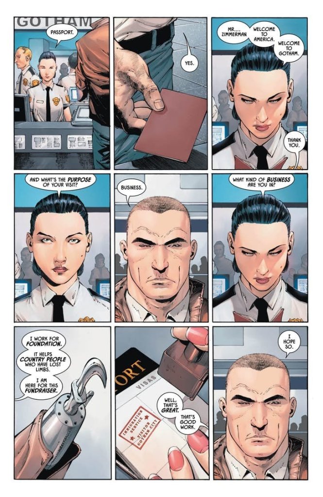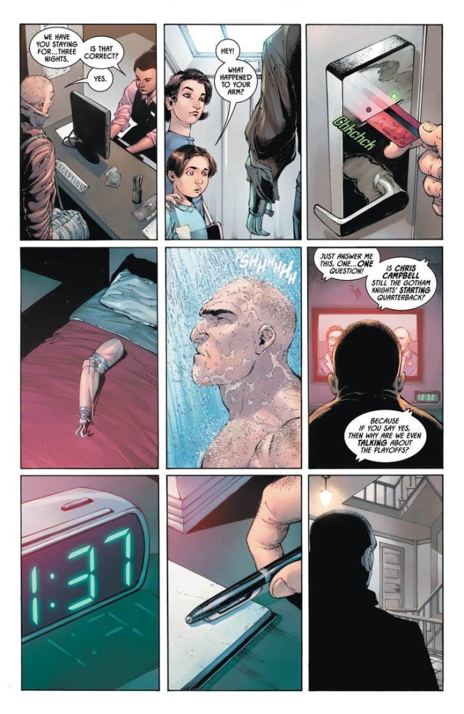 This issue starts off with some serious foreshadowing with what appears to be a hitman, and sets up for the issue’s conclusion, making you question whether they’re planning to go after Batman or Nightwing and what the repercussions for their actions are likely to be? I would recommend everyone read the issue a second time as the seemingly random events make way more sense after the discussion between the dynamic duo and Gordon.