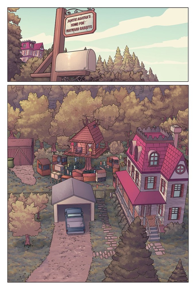 Auntie Agatha’s Home For Wayward Rabbits is an interesting creation. Signalling the return of writer Keith Giffen to creator-owned comics, the series sees him reuniting with artist Benjamin Roman for a series about… well… about a home for wayward rabbits.